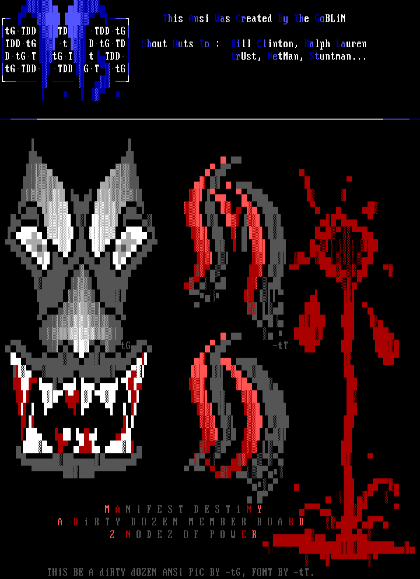 THiS BE A diRTY dOZEN ANSi PiC BY -tG, FONT BY -tT.