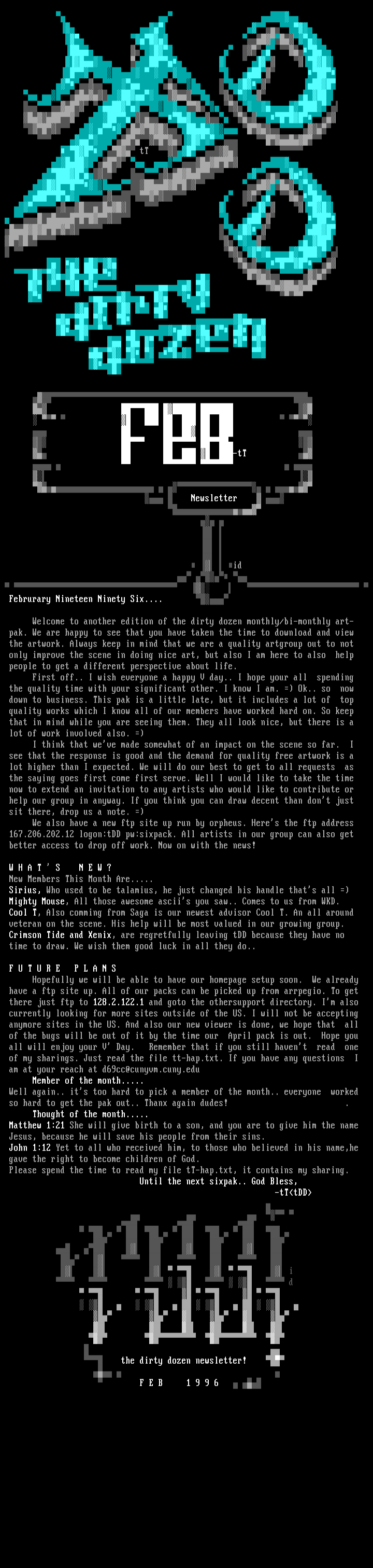 Welcome to another edition of the dirty dozen monthly/bi-monthly art-