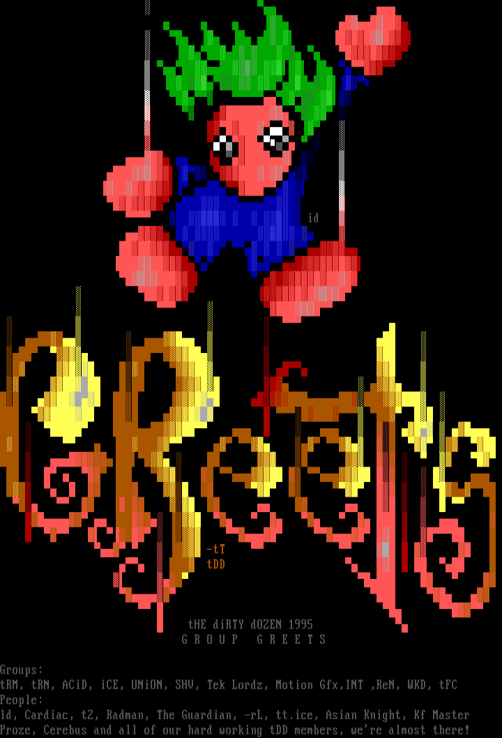tRM, tRN, ACiD, iCE, UNiON, SHV, Tek Lordz, Motion Gfx,INT ,ReN, WKD, tFC