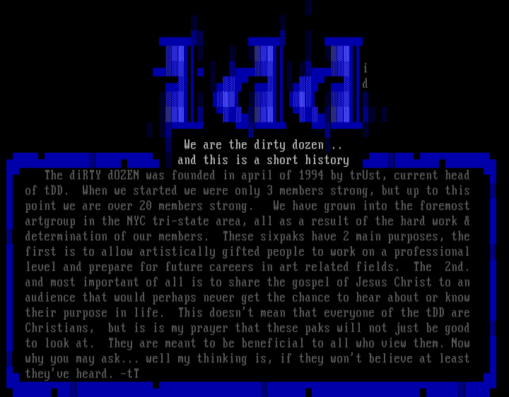 The diRTY dOZEN was founded in april of 1994 by trUst, current head
