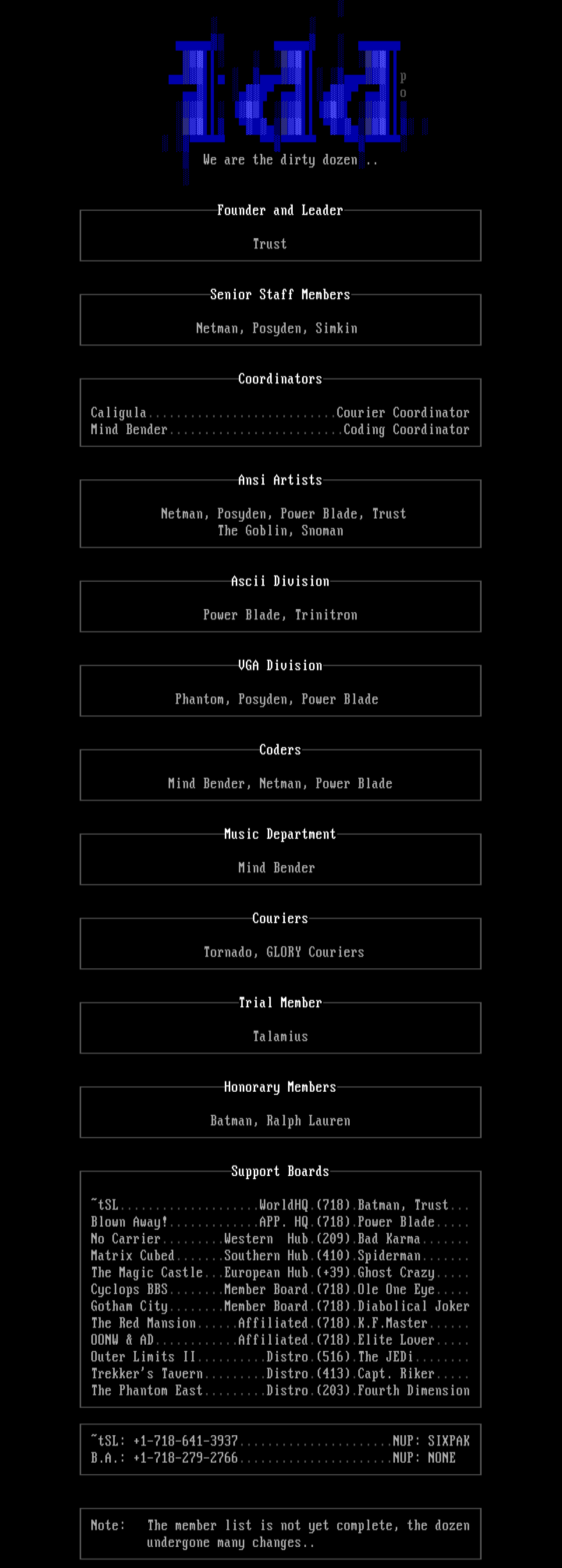 Note: The member list is not yet complete, the dozen