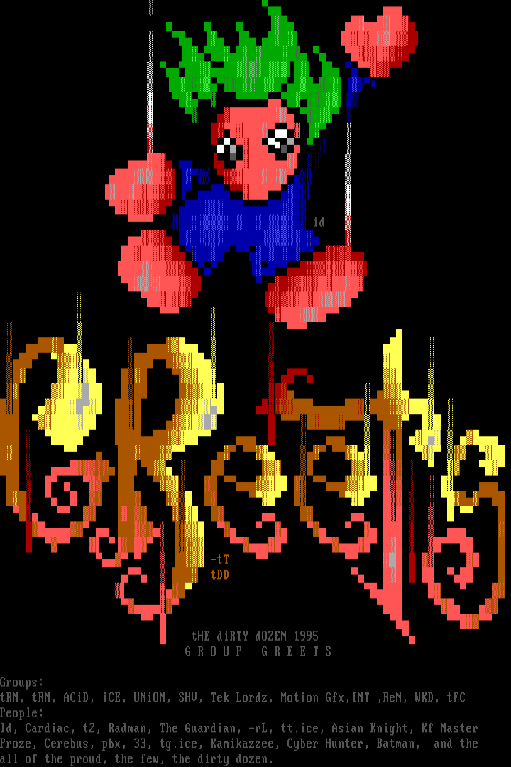 tRM, tRN, ACiD, iCE, UNiON, SHV, Tek Lordz, Motion Gfx,INT ,ReN, WKD, tFC