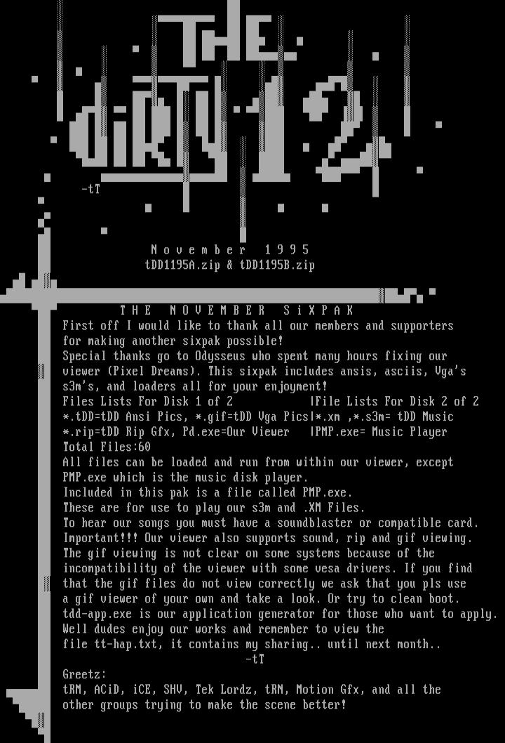 *.tDDtDD Ansi Pics, *.giftDD Vga Pics*.xm ,*.s3m tDD Music