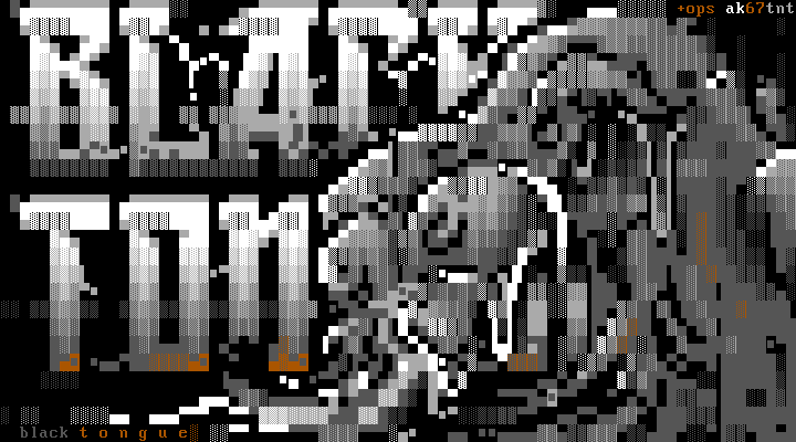 When I'm sketching new font ideas I usually take names of songs from bands I like; in this case Mastodon's Black Tongue. I drew this really gnarly purple tongue and a font and then TNT did his miracle magic and made this. I'm convinced if I ever start a BBS it would be Black Tongue.