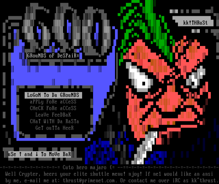 ----------- Cuto hero majaro ------------------- Well Crypter, heers your elite shuttle menu! njoy! If ne1 would like an ansi