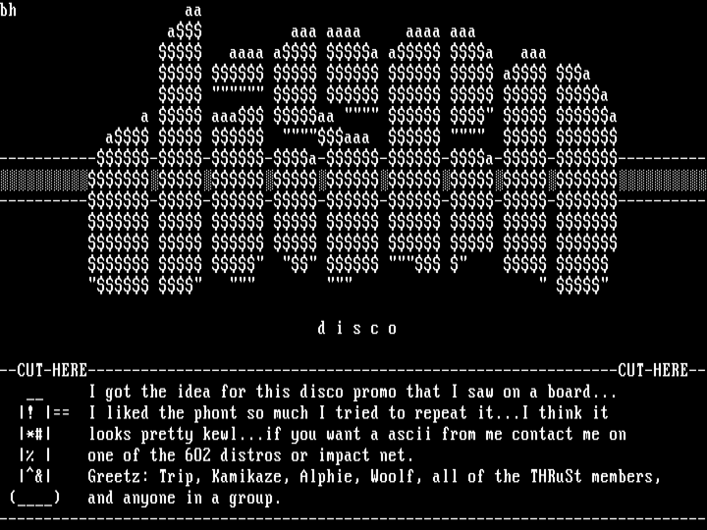 --CUT-HERE------------------------------------------------------------CUT-HERE-- I got the idea for this disco promo that I saw on a board...