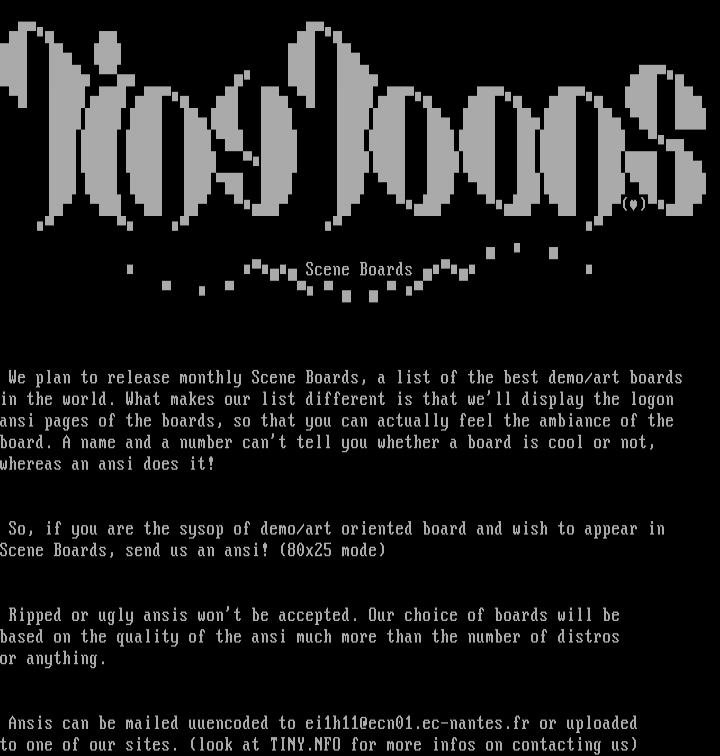 So, if you are the sysop of demo/art oriented board and wish to appear in