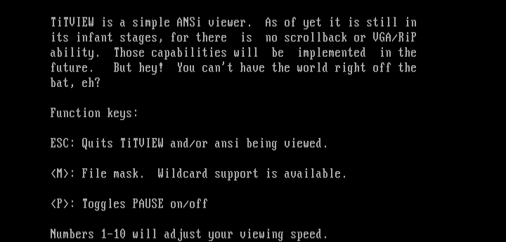 ESC: Quits TiTVIEW and/or ansi being viewed.