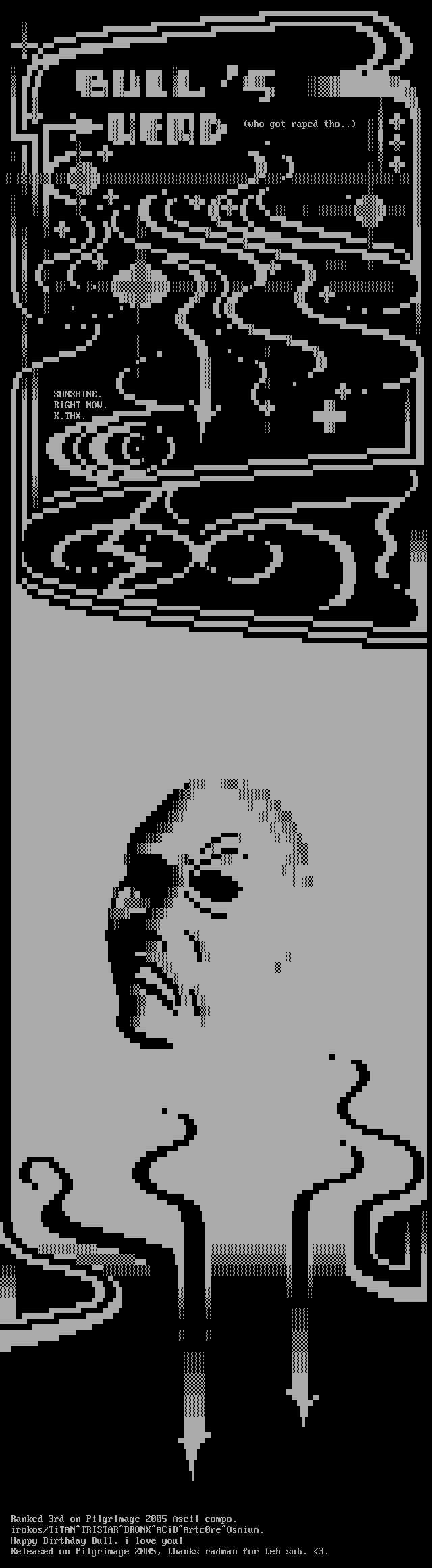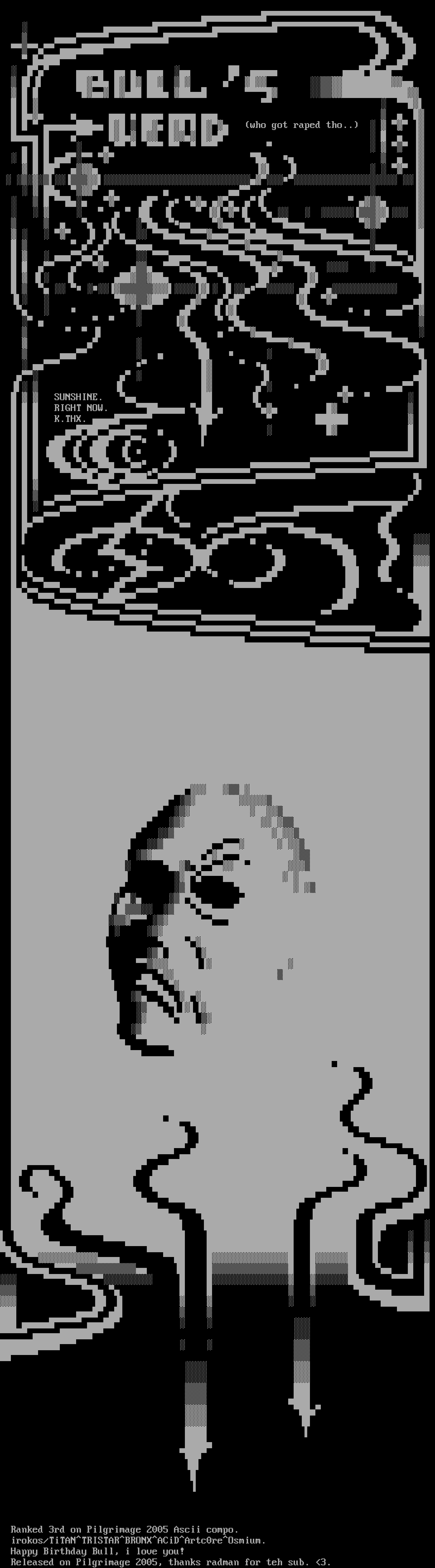 Ranked 3rd on Pilgrimage 2005 Ascii compo.