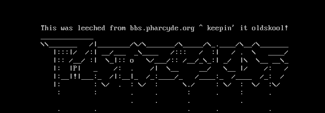 This was leeched from bbs.pharcyde.org keepin it oldskool!