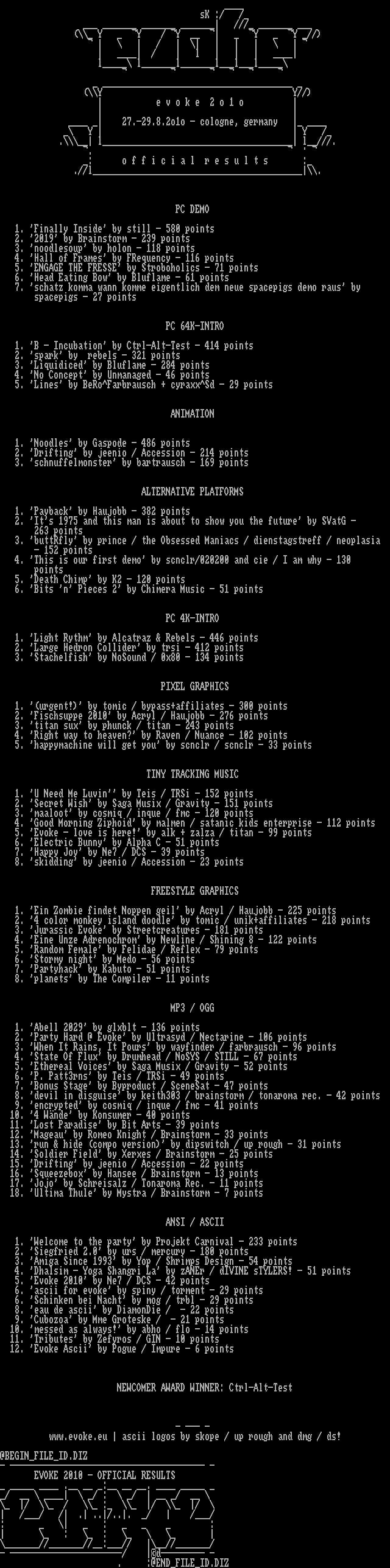 EVOKE 2010 - OFFICIAL RESULTS