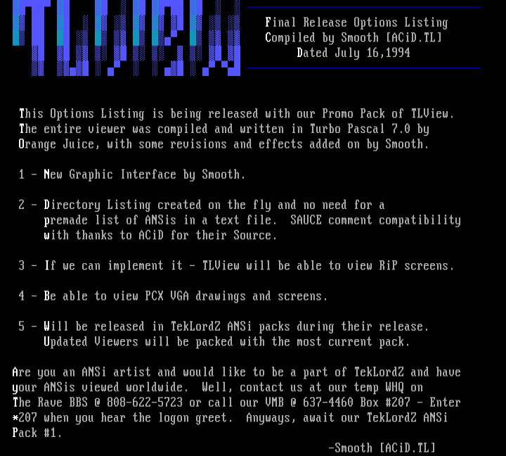 *207 when you hear the logon greet. Anyways, await our TekLordZ ANSi