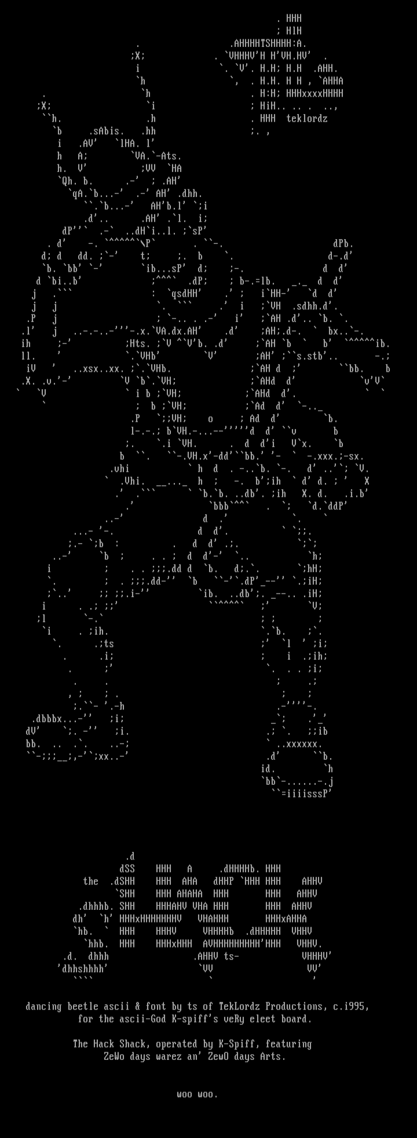 dancing beetle ascii font by ts of TekLordz Productions, c.i995,