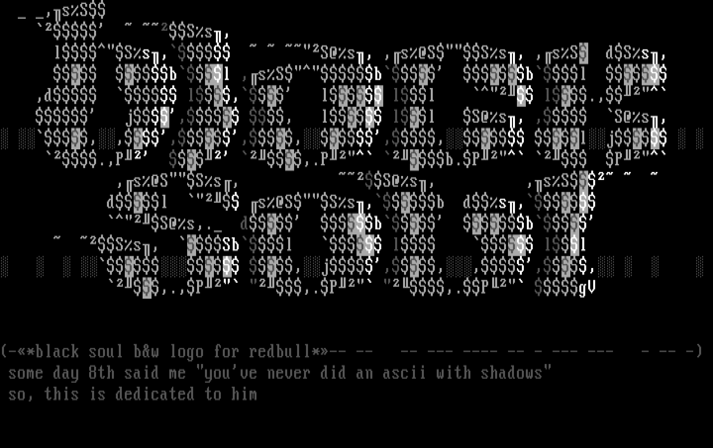 -*black soul bw logo for redbull*-- -- -- --- ---- -- - --- --- - -- - some day 8th said me youve never did an ascii with shadows