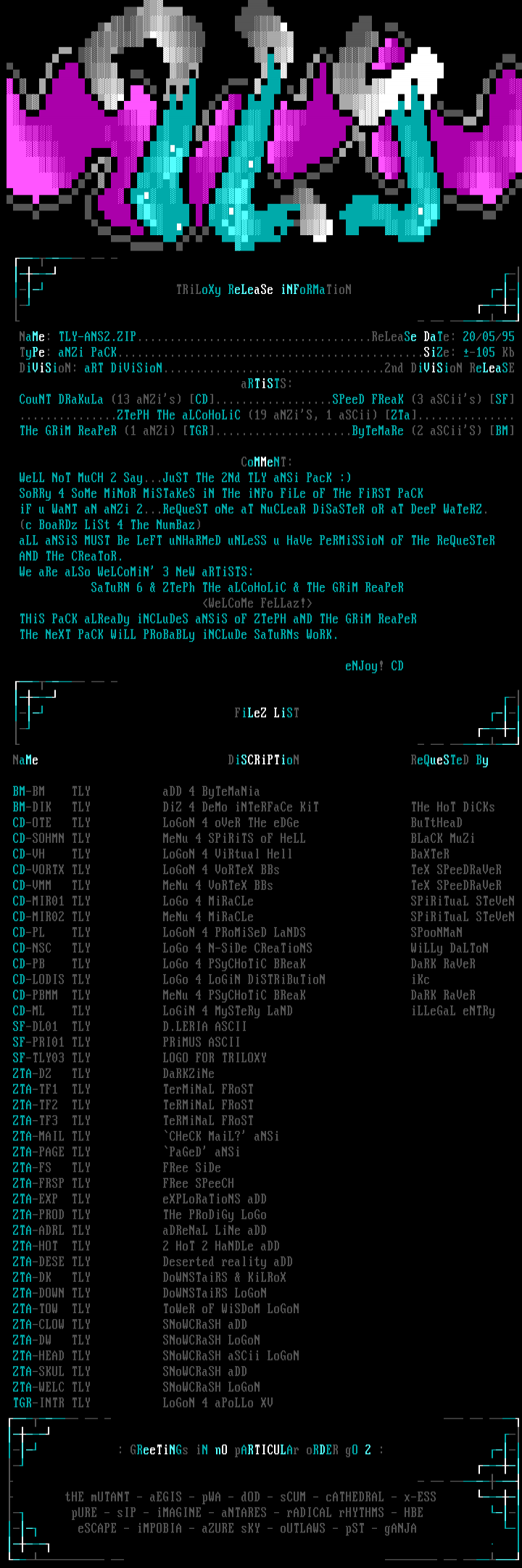 TRiLoXy ReLeaSe iNFoRMaTioN NaMe: TLY-ANS2.ZIP....................................ReLeaSe DaTe: 20/05/95