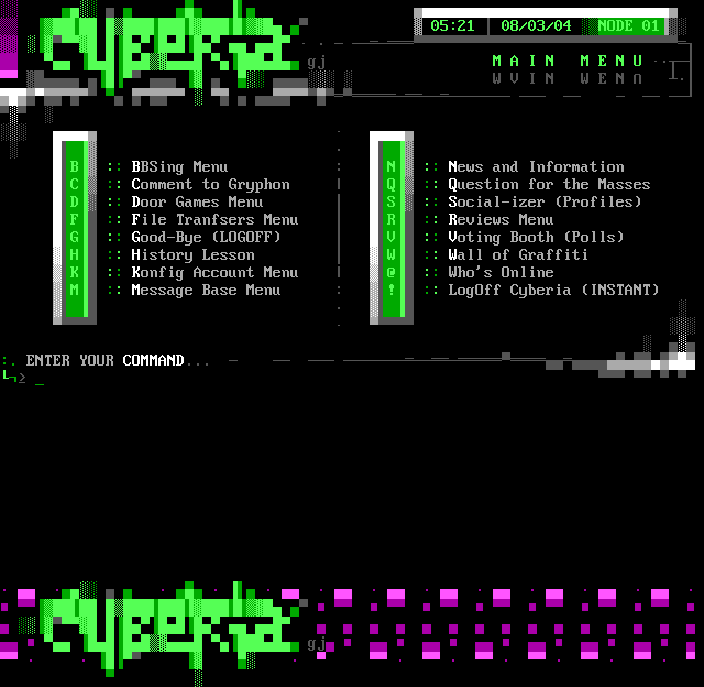 M :: Message Base Menu : ! :: LogOff Cyberia INSTANT