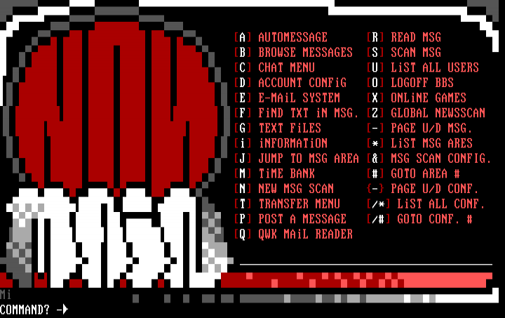 A AUTOMESSAGE R READ MSG B BROWSE MESSAGES S SCAN MSG C CHAT MENU U LiST ALL USERS