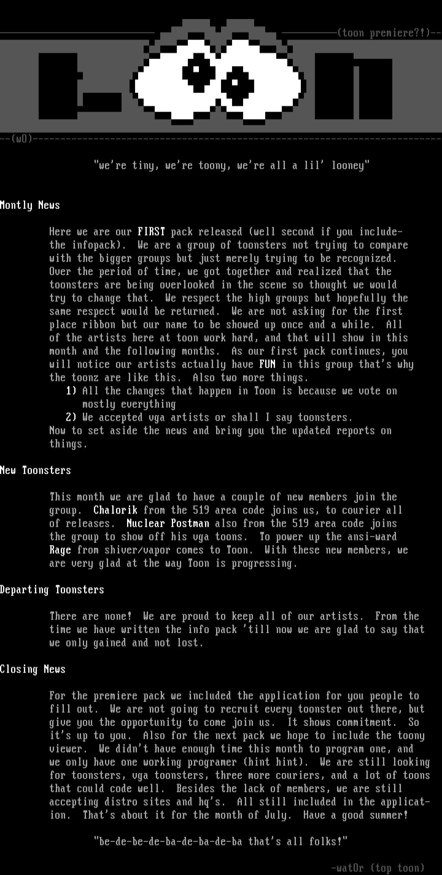 for toonsters, vga toonsters, three more couriers, and a lot of toons that could code well. Besides the lack of members, we are still