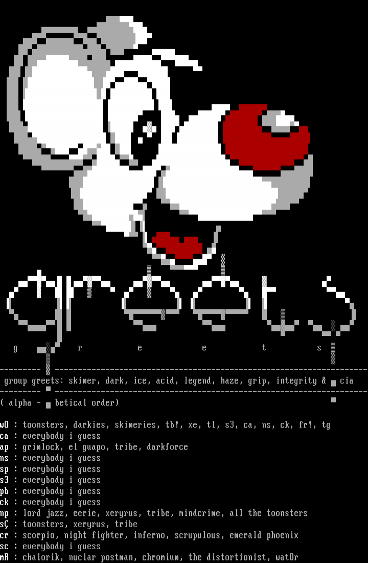 wO: toonsters, darkies, skimeries, tb!, xe, tl,