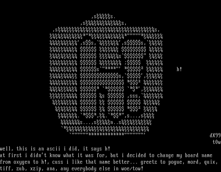 from oxygen to h!, cuss i like that name better... greetz to pogue, mord, quix,
