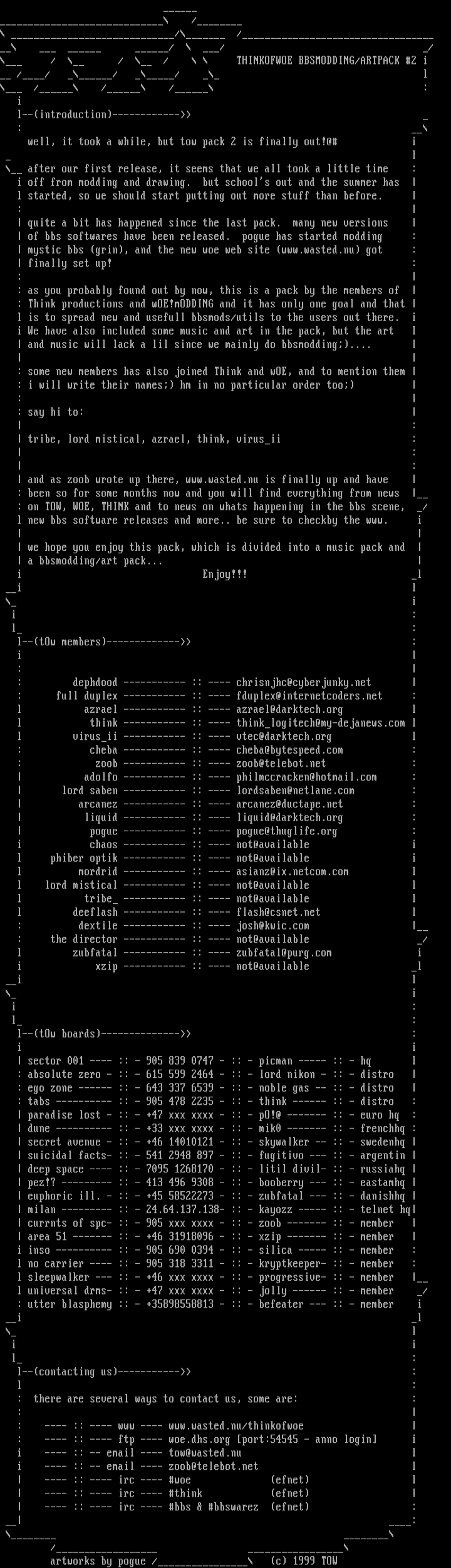 : on TOW, WOE, THINK and to news on whats happening in the bbs scene, /