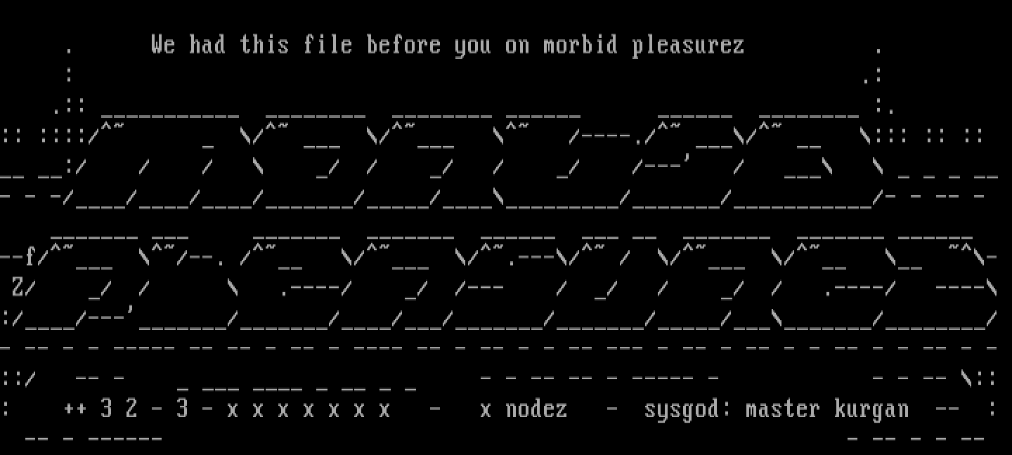 : ++ 3 2 - 3 - x x x x x x x - x nodez - sysgod: master kurgan -- :