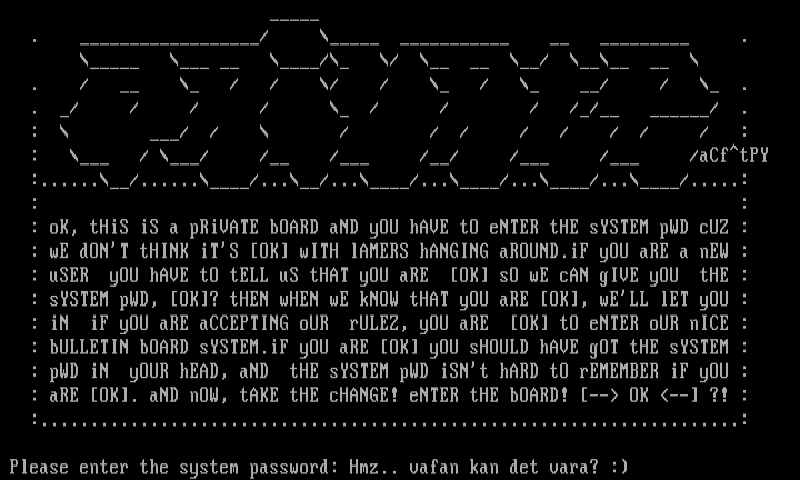 : oK, tHiS iS a pRiVATE bOARD aND yOU hAVE tO eNTER tHE sYSTEM pWD cUZ :