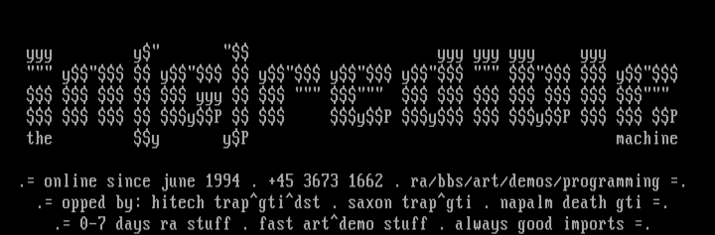 . online since june 1994 . +45 3673 1662 . ra/bbs/art/demos/programming .
