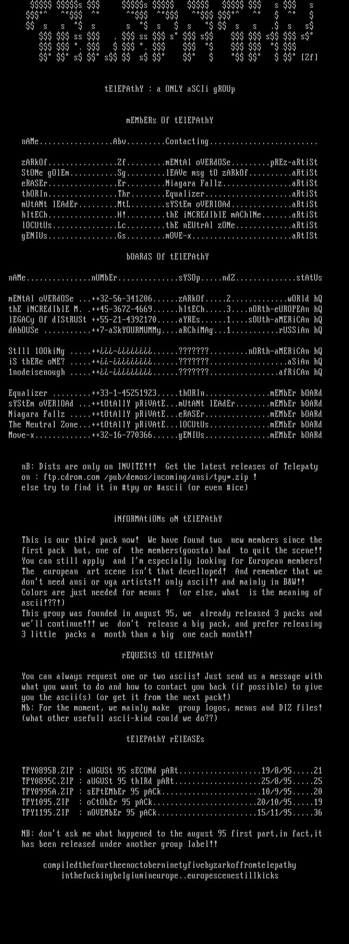 dont need ansi or vga artists!! only ascii!! and mainly in BW!!