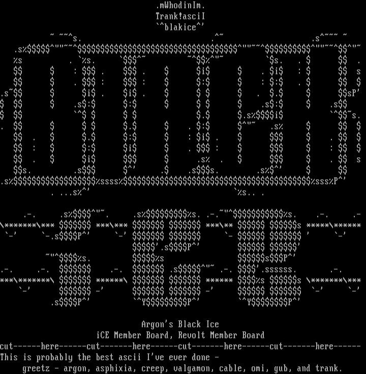 greetz - argon, asphixia, creep, valgamon, cable, omi, gub, and trank.