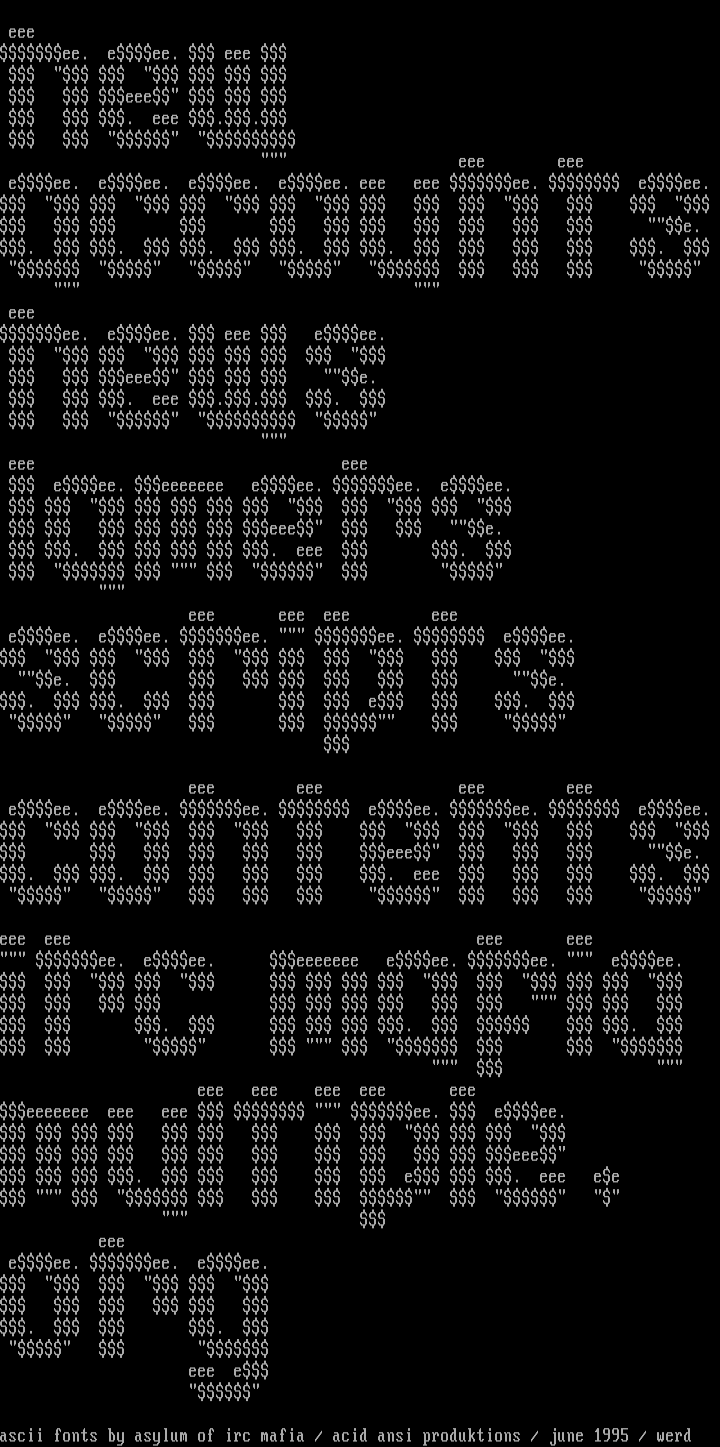 ascii fonts by asylum of irc mafia / acid ansi produktions / june 1995 / werd