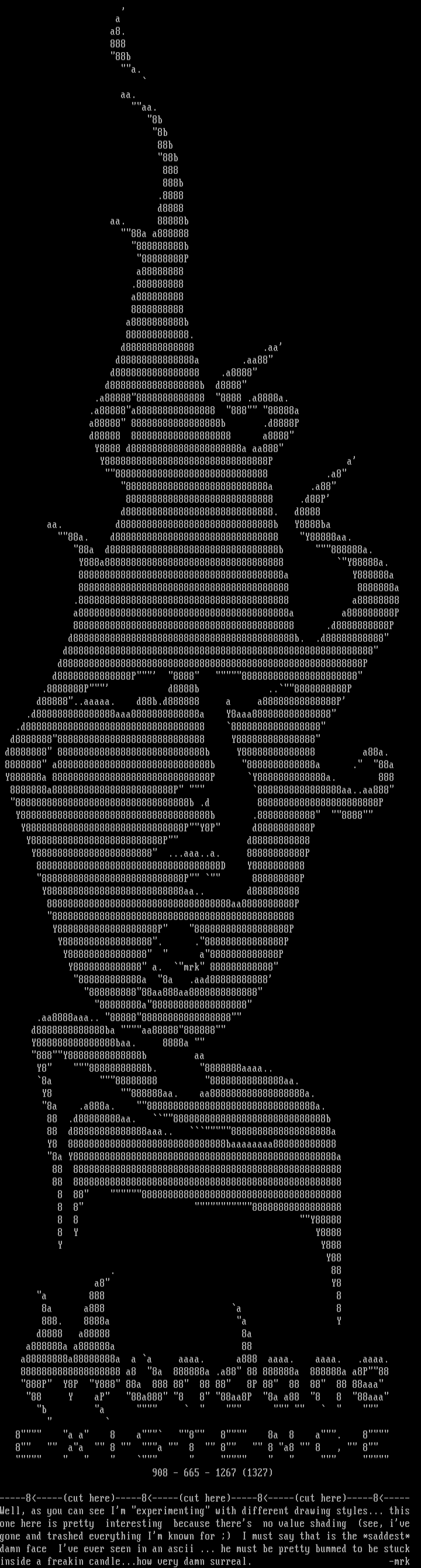 damn face Ive ever seen in an ascii ... he must be pretty bummed to be stuck
