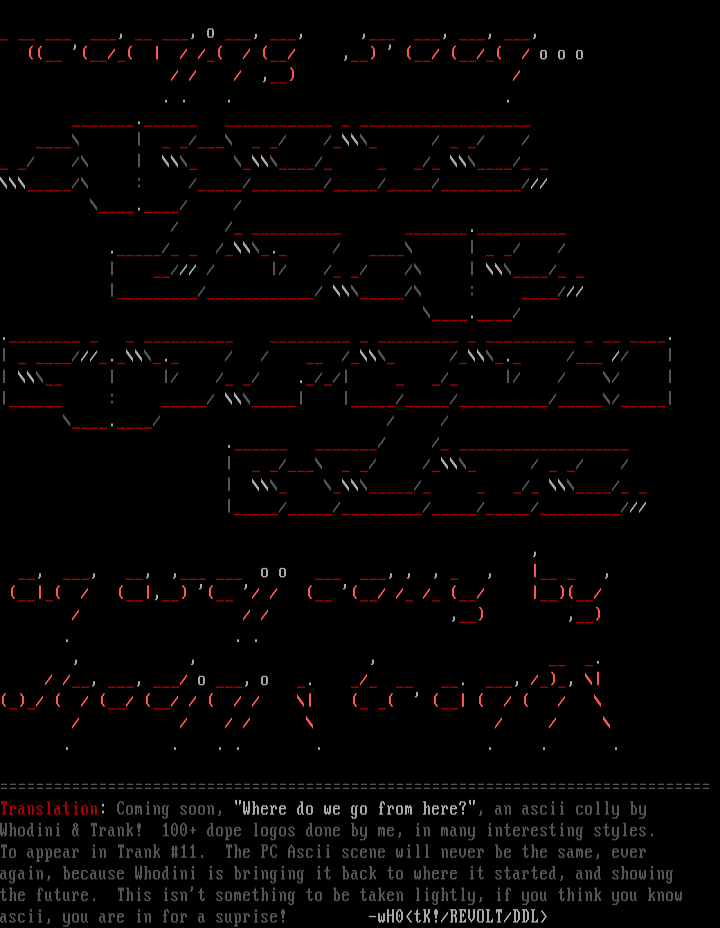 To appear in Trank 11. The PC Ascii scene will never be the same, ever