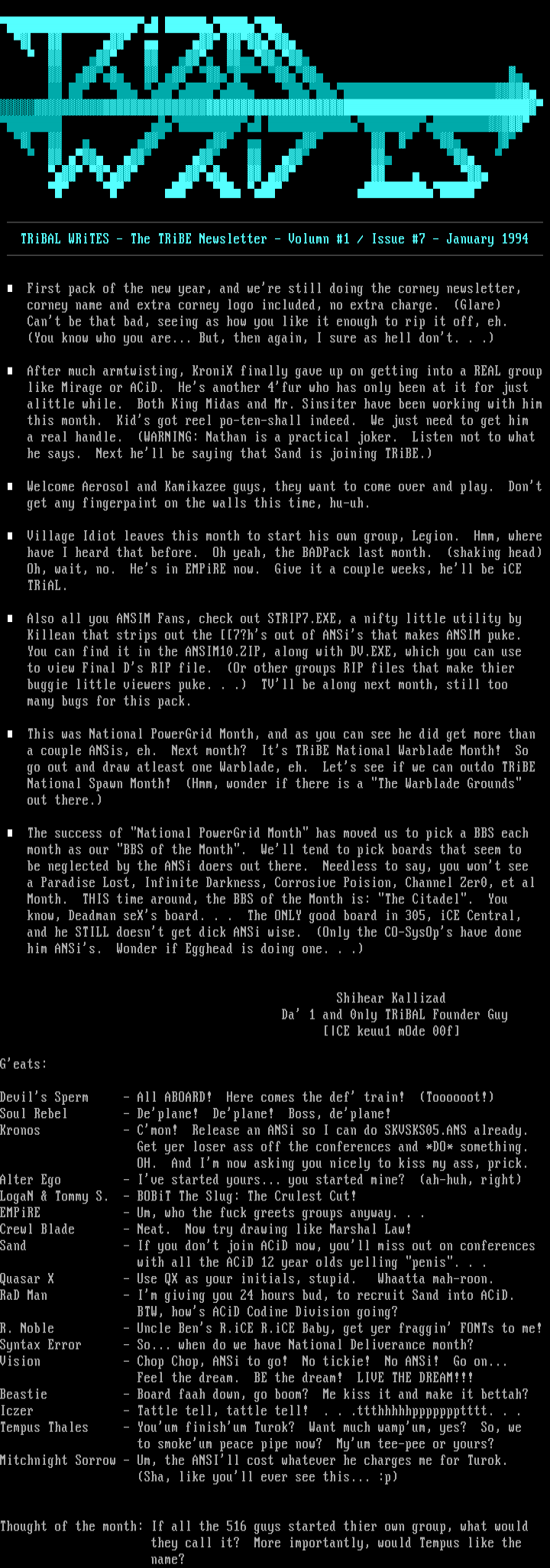 TRiBAL WRiTES - The TRiBE Newsletter - Volumn 1 / Issue 7 -