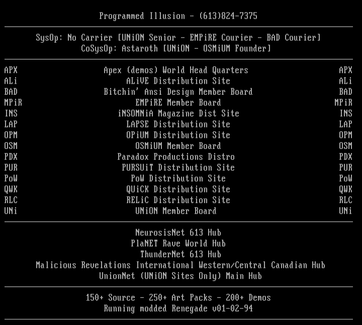 SysOp: No Carrier UNiON Senior - EMPiRE Courier - BAD Courier