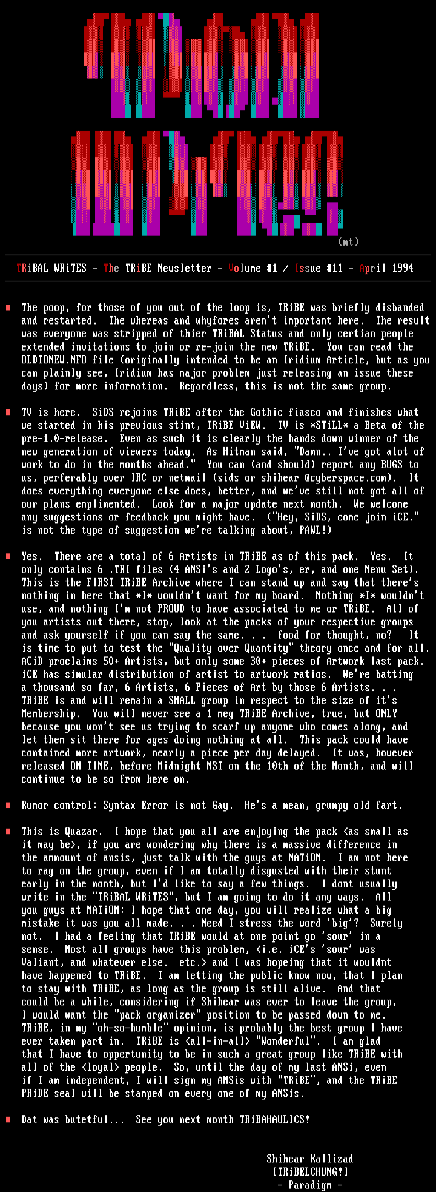Membership. You will never see a 1 meg TRiBE Archive, true,