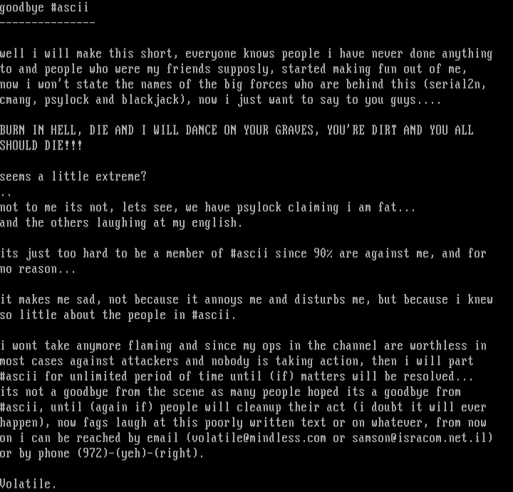 on i can be reached by email volatile@mindless.com or samson@isracom.net.il