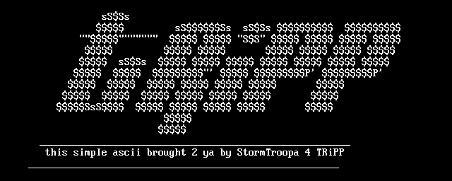 this simple ascii brought 2 ya by StormTroopa 4 TRiPP