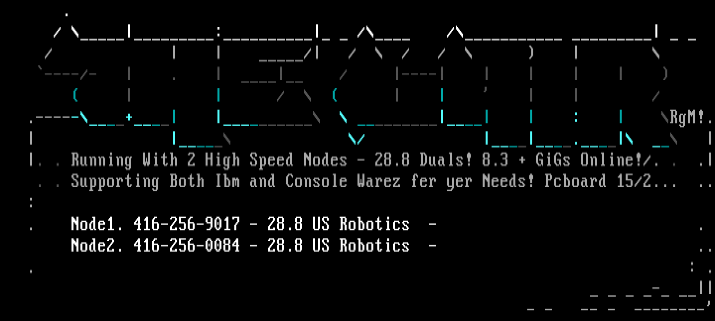 .-----+ : RgM!. / . . . Running With 2 High Speed Nodes - 28.8 Duals! 8.3 + GiGs Online!/. . . . . Supporting Both Ibm and Console Warez fer yer Needs! Pcboard 15/2... .. :