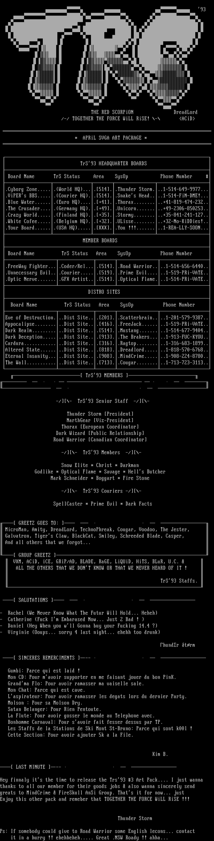 greats to MindCrime FireSkull AnSi Group. Thats it for now... just