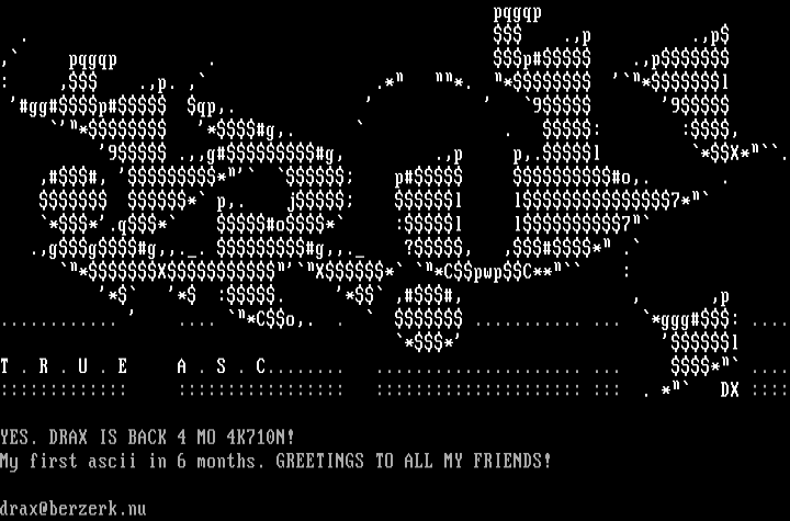 My first ascii in 6 months. GREETINGS TO ALL MY FRIENDS!