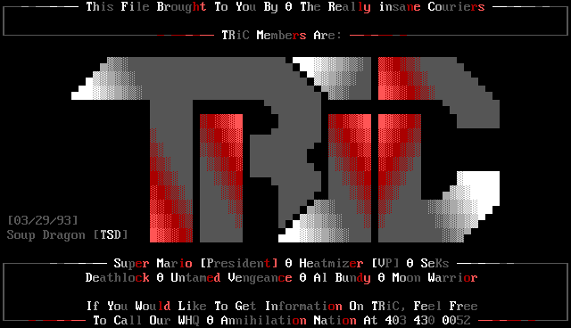 This File Brought To You By The Really insane Couriers TRiC Members Are: