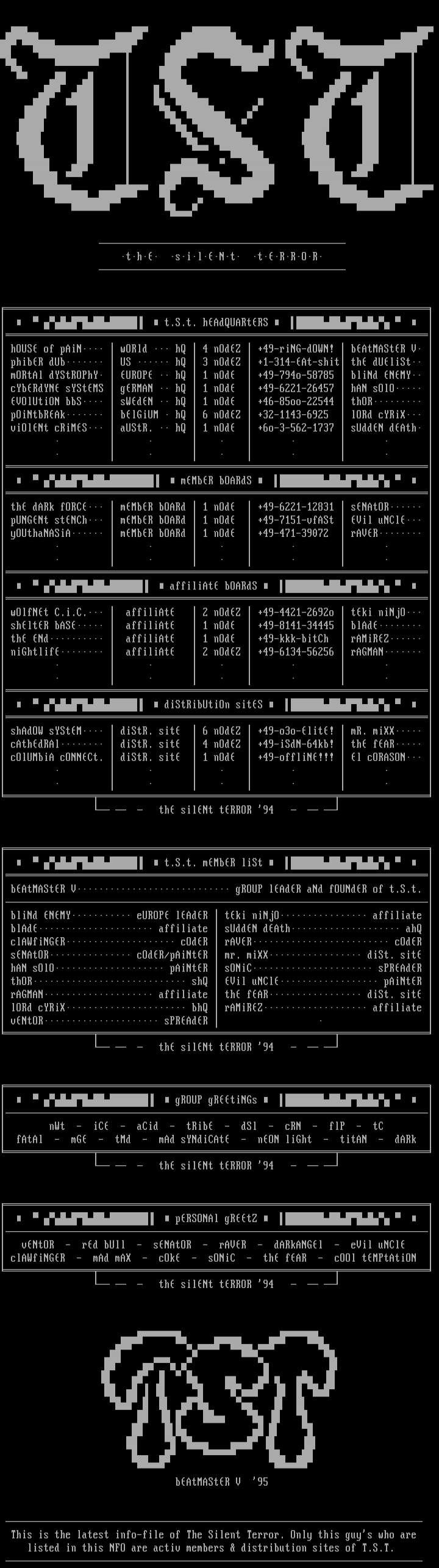 This is the latest info-file of The Silent Terror. Only this guys who are