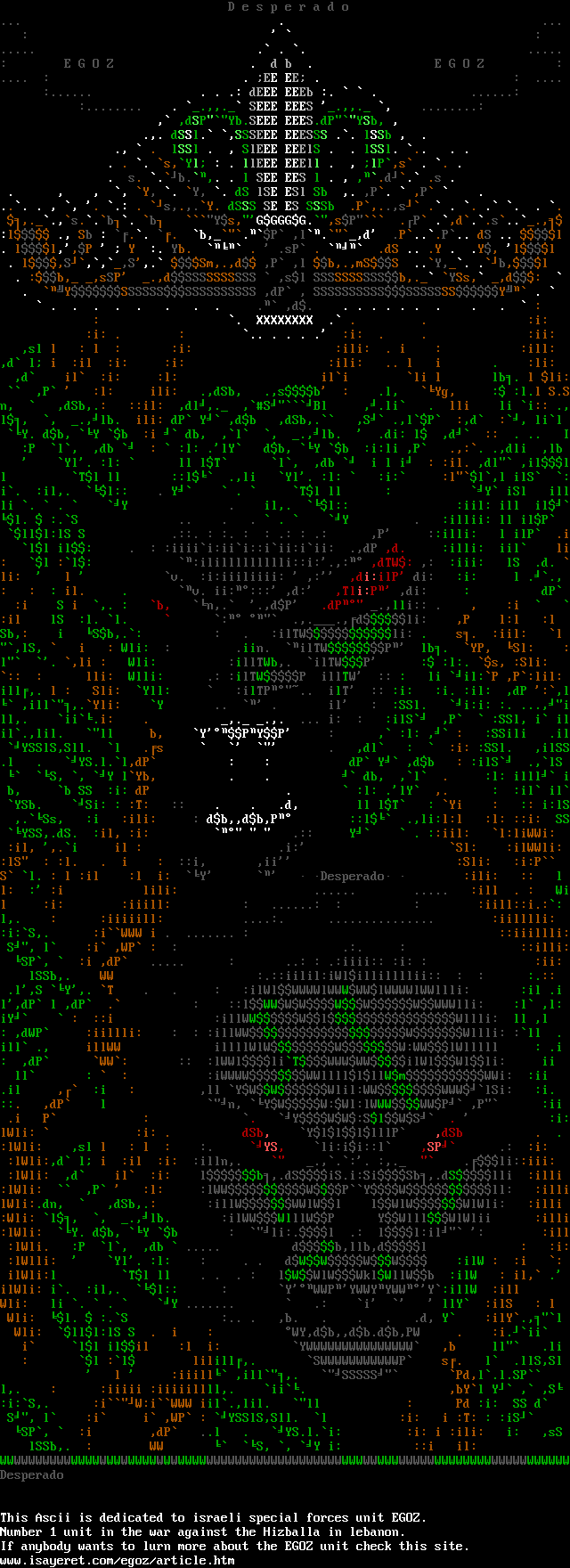 This Ascii is dedicated to israeli special forces unit EGOZ.