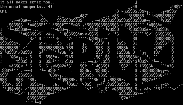 it all makes sense now.. j the usual suspects.. 4! ,d .d7CN1 j *j,*,..,*