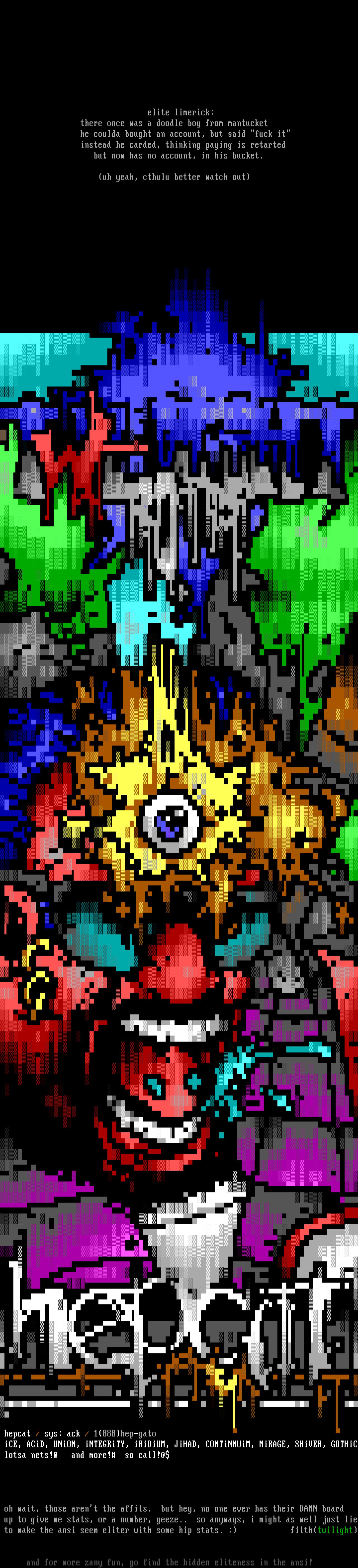 and for more zany fun, go find the hidden eliteness in the ansi!