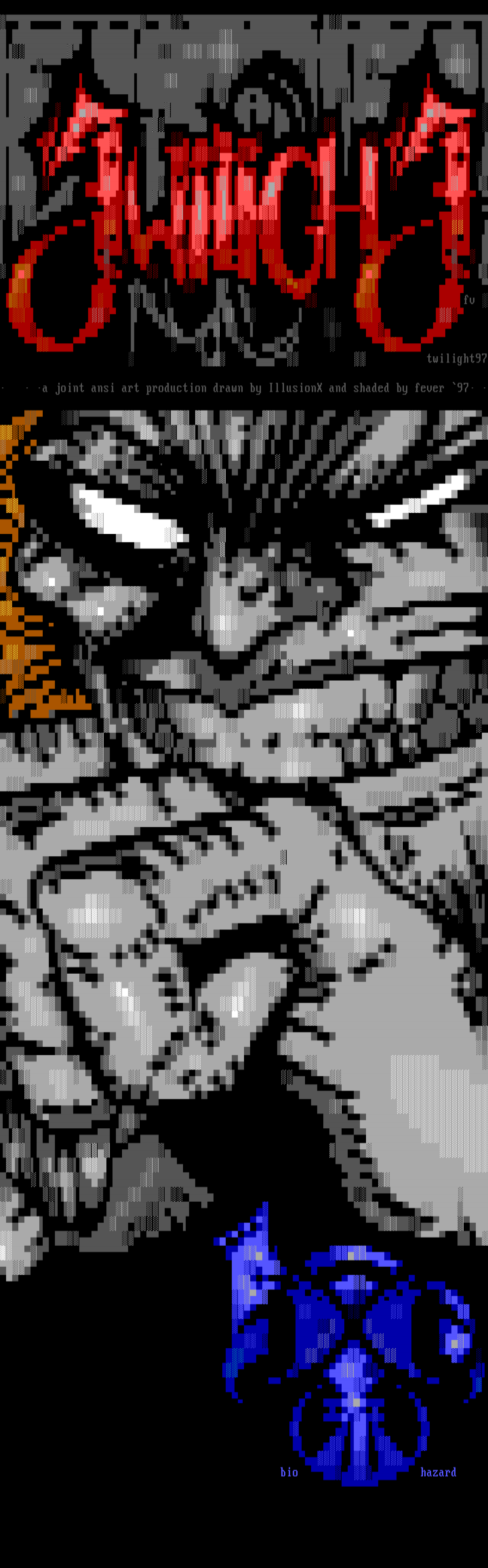 a joint ansi art production drawn by IllusionX and shaded by fever 97