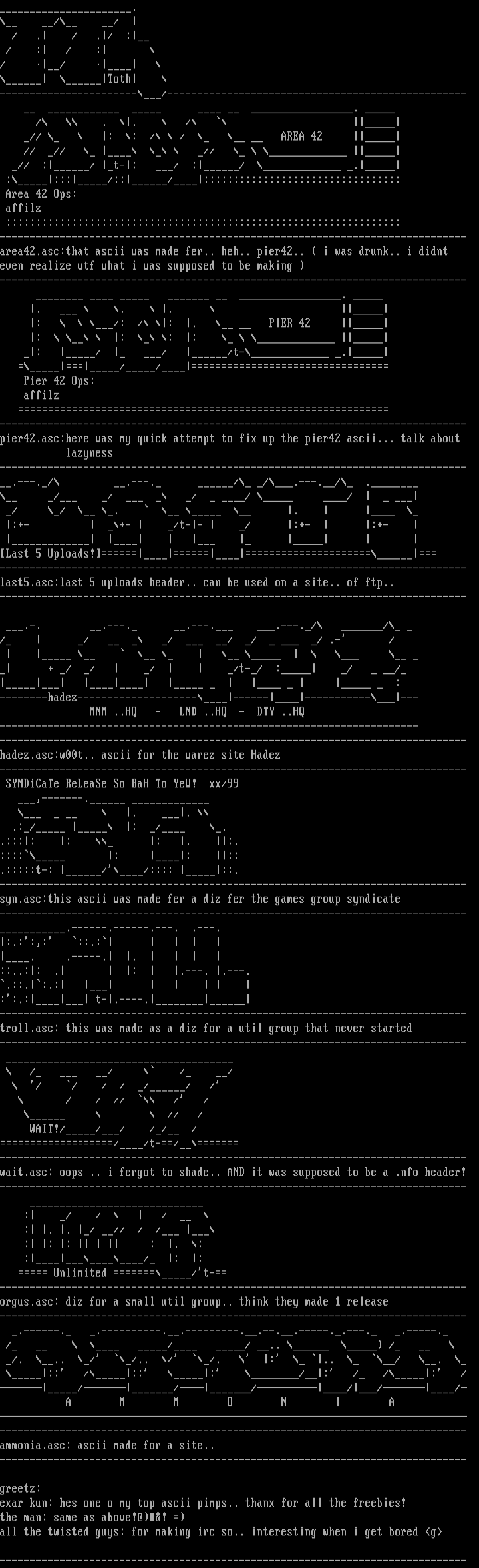 area42.asc:that ascii was made fer.. heh.. pier42.. i was drunk.. i didnt