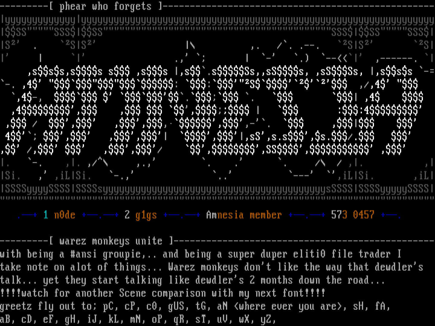 --------- warez monkeys unite ------------------------------------------------with being a ansi groupie,.. and being a super duper eliti0 file trader I