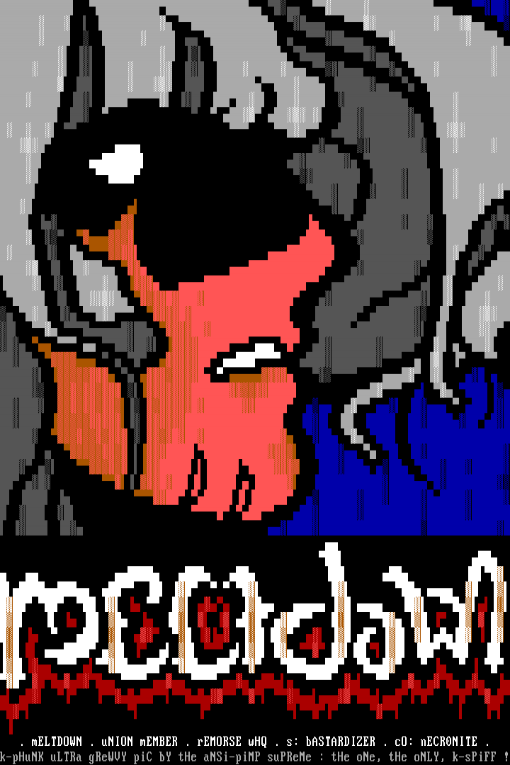 . mELTDOWN . uNION mEMBER . rEMORSE wHQ . s: bASTARDIZER . cO: nECR0NITE .